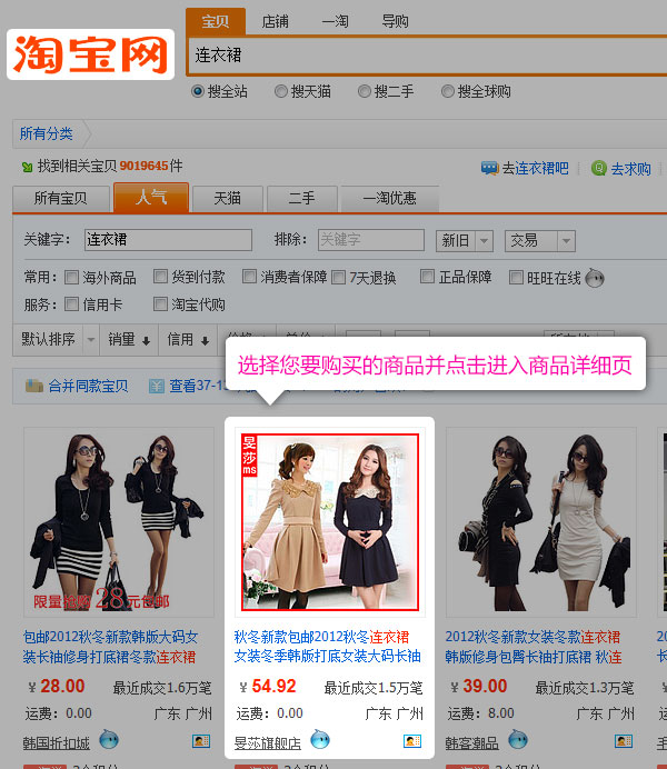第二步:跳转到“淘宝网”,选中您要购买的商品,并点击进入商品详细页;